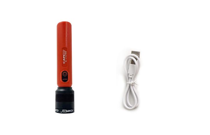 • Adjustable aluminum flashlight, aluminum head with 5W light bulb, battery capacity of 1500 milliampere, telescopic zoom function, type-C charging port