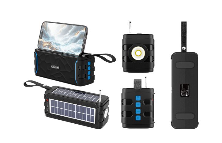 • 8W/3.7V 800MA/USB/TF/FM/BT/Flashlight/Mobile phone holder/Solar panel*2/DC 5V(TYPE-C)