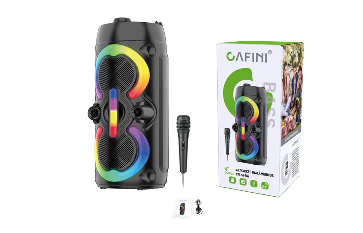 • 4"*2/16W(S10)/3.7V 1500mAh/USB/TF/FM/BT/AUX/LED/Microphone hole*1/DC 5V(TYPE-C)