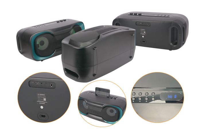 • 5 "* 2+1.25" * 2/USD/TF/FM/BT/AUX/Display screen/EQ/LED/Microphone jack * 1/Microphone priority/7.4V 8000mAh BATTERY/DC 5V (TYPE-C)/AC 90-240V